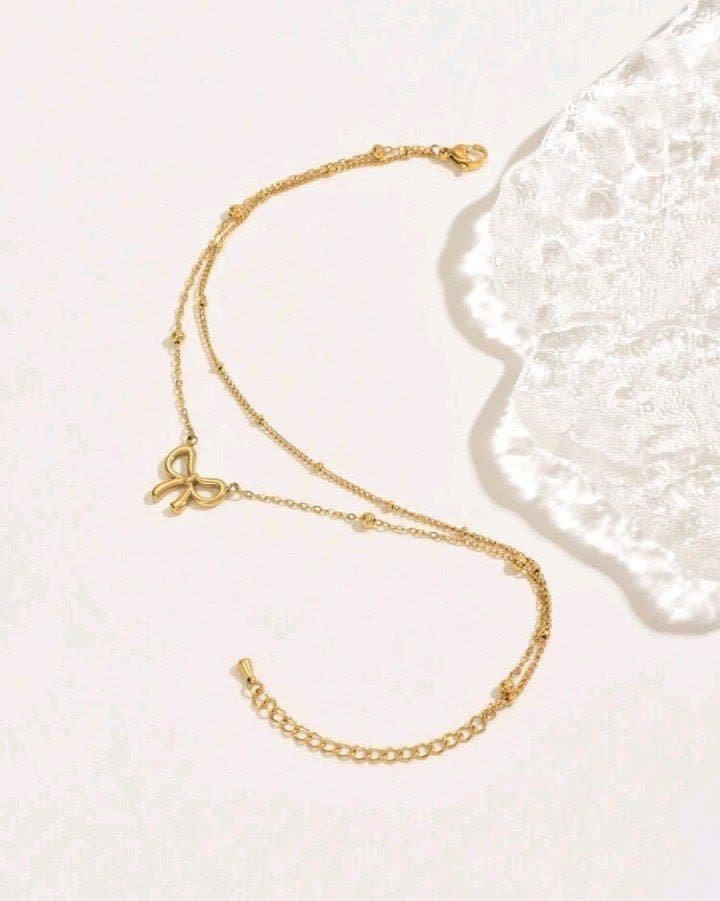 1 عدد خلخال دو لایه استیل ضد زنگ مدل پاپیونی خاص و زیبا🎀🥺✨