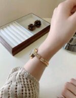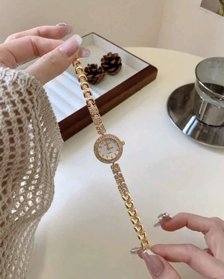 ساعت مد روز و دستبند 1 عددی گرد طلایی مات با طرح کریستال زیرکونیا👌🏻✨🤍